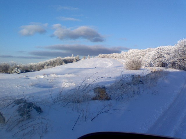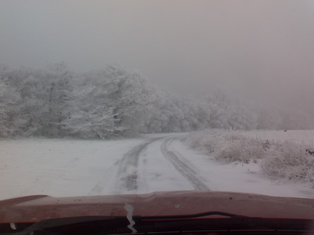 Ladybug and I took the SUV and drove to the top of Viking Mtn in Southern Greene County yesterday afternoon. What a beautiful scene it was! Probably 6 inches of snow or so...everything was covered in white at the top, and it was treacherous going up (and coming down) to say the least. It was clear, and we could see over the top of Fodderstack, Chimneytop, and Bays Mtns, well into SW/Va.